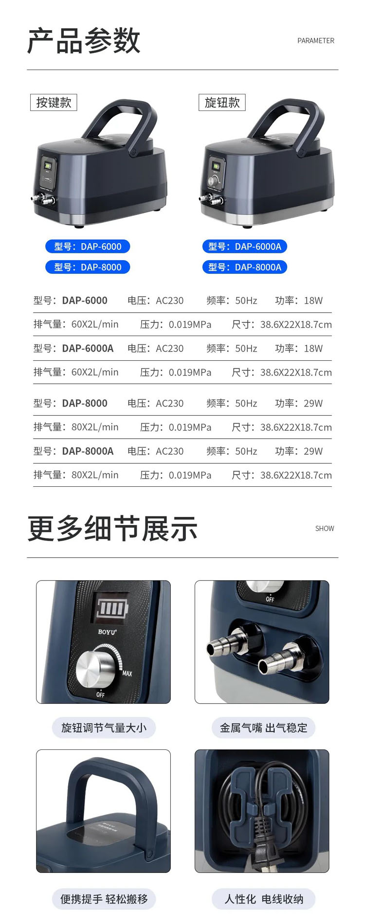 出氣量大,無油潤滑出氣純凈,使用安全可靠。